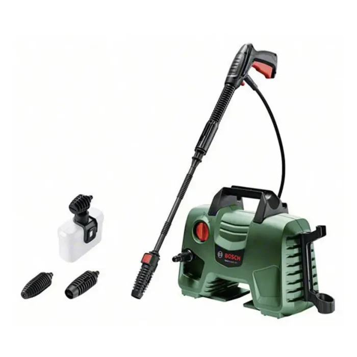 Máy phun xịt rửa áp lực cao Bosch Easy Aquatak 110 nhỏ gọn, dễ dàng sử dụng, hiệu suất làm sạch nhanh chóng. Aquatak 110 có thiết kế công thái học với tay cầm ngang, dễ cầm nắm và di chuyển máy. Thiết kế các khe để phụ kiện gọn gàng trên máy rất tiện lợi.